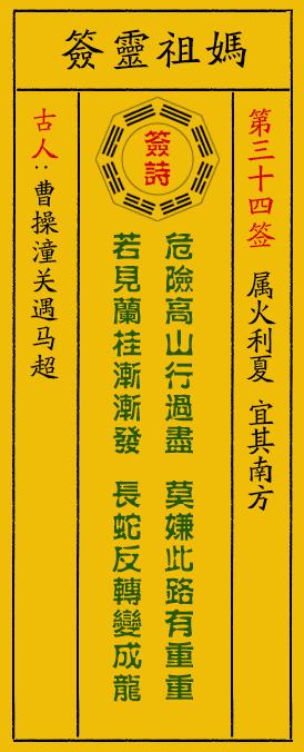 【台湾北海观音明善堂】经过那危险的高山,此去已是平坦的康庄大道,勿嫌路遥险阻,慢慢总会到达目的地。看看那些兰桂,也是慢慢成长开花,只要有恒心,蛇也有修成龙的一天。此签告诉当事人福份尚有不足,须有恒为成功之本,不要怕困难,尤其不可半途而废,那永远没有成功的希望。俗话说:天下无难事,只怕有心人。求得此签暗示目前福报不足,问事求谋,须经过长久的艰辛万苦,才会开始解运而迈向顺利之大道,应把握良机,积极进取。宜向南方有利。问功名,这次成绩不理想,继续努力下次可获良好表现。问求职,暂时无法获得理想职位,但认真进取,可获成功。问婚姻,最初难免受到种种阻碍,但成功与否,全靠自己的努力。问疾病,宜消灾,病情加重,老人危险宜消灾。 【台湾育德妈祖同修会】走过危险的高山,此去已是平坦的康庄大道,别嫌这条道路太远,慢慢的总会到达目的地。看看那兰桂,也是慢慢成长开花,只要有恒心,蛇也有修成龙的一天!此签告诉当事人,有恒为成功之本,不要怕困难,不要嫌费力,尤其不可半途而废,那是永远没有成功的希望。俗语云:“天下无难事,只怕有心人。”抽到此签,表示经过长久的艰辛万苦,开始解运而迈向顺利之大道,应把握良机,积极进取。向南方推进有利。问功名,这次成绩不理想,继续努力下次可获良好表现。问求职,暂时无法获得理想职位,但热诚奔跑,可获成功。问婚姻,最初难免发生种种阻挠,但毕竟是良缘,成功与否,全靠热诚与努力。 |